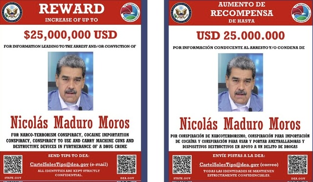 El presidente de Venezuela, Nicolás Maduro, entró a la lista negra de Estados Unidos y se ha convertido en un blanco principal por el que se ofrece una recompensa de 25 millones de dólares por información que lleve a su arresto o condena.