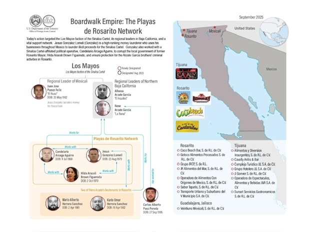 La Oficina de Control de Activos Extranjeros (OFAC) del Departamento del Tesoro de Estados Unidos, designó a 22 objetivos en México (7 personas físicas y 15 personas morales)